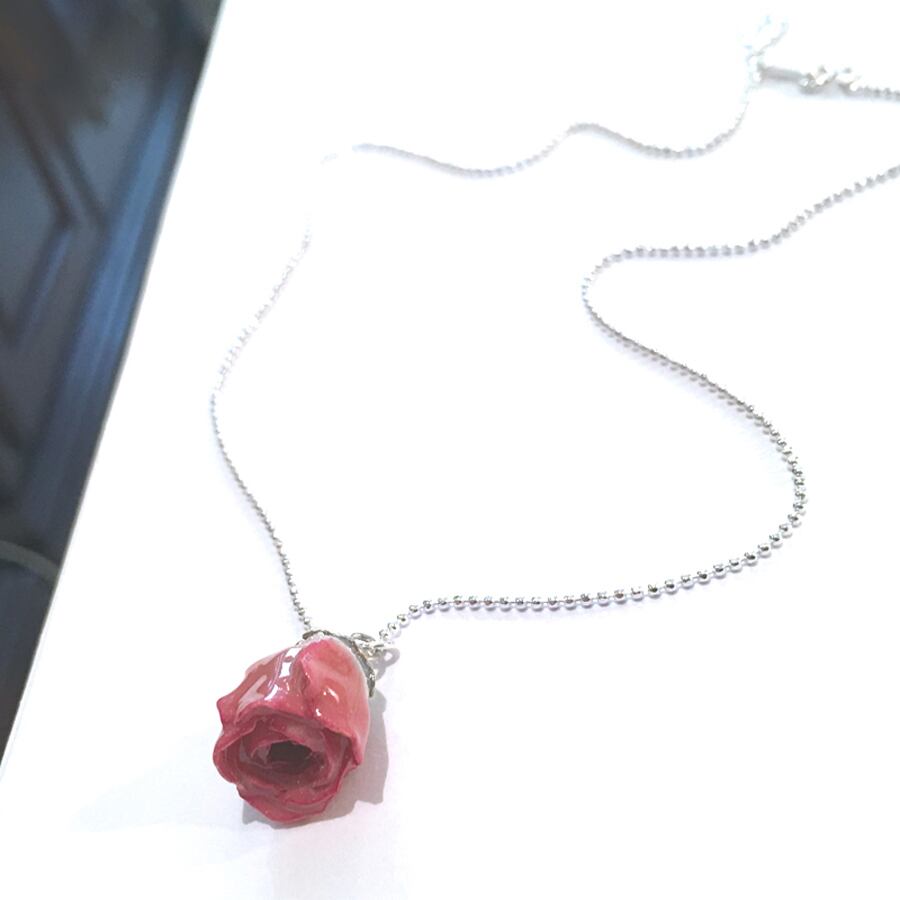 薔薇部分サイズ縦約14~17mm 直径約12~15mm カットボールチェーン(40~50cm)付属