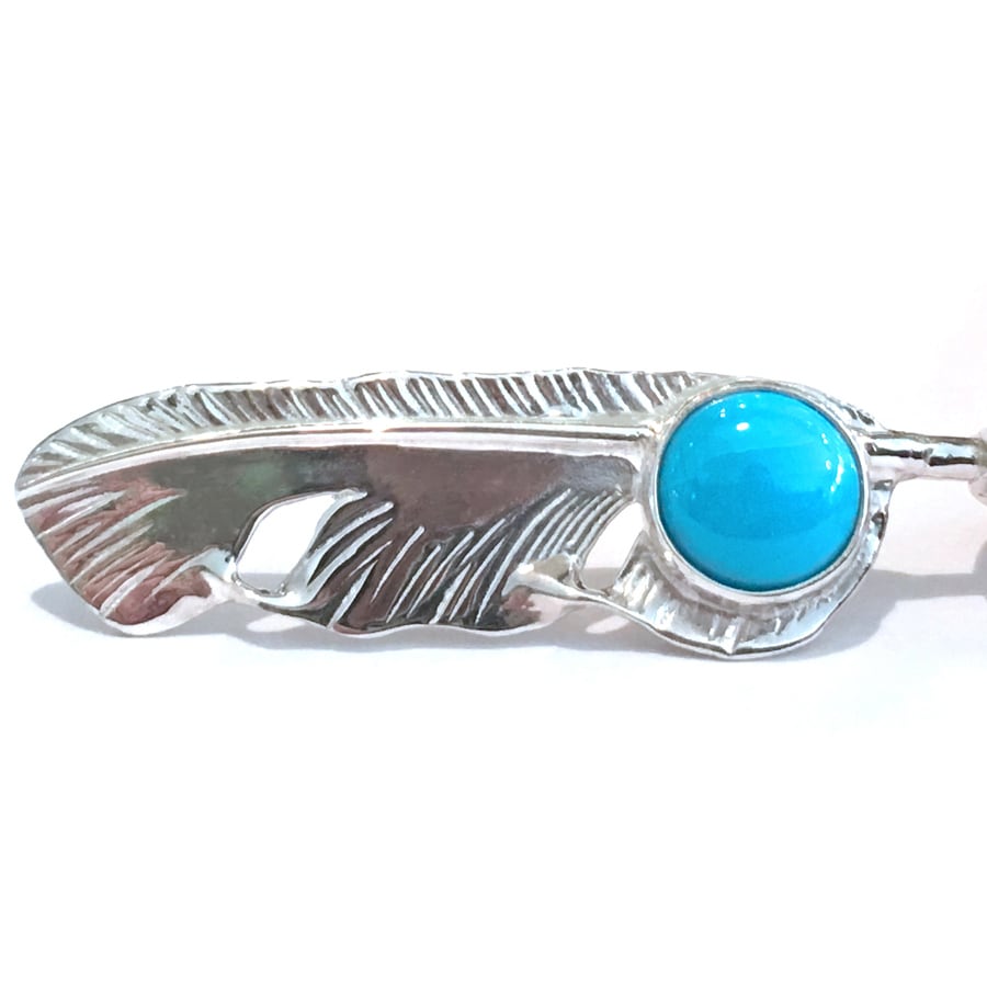 世界レベルで宝飾クラスの天然ターコイズを、力強く繊細な羽根にマウントしました。左右非対称のフェザーに、絶妙なバランスで宝飾クラスのターコイズを留めました。頑強に、被せ留めにしています。いつか願いが叶う様、羽根の肢はKリングに突き刺さります。36mm程の羽根は、性別を問わず単体でも重ね付けでも使いやすい大きさです。とても躍動感ある SuperFLY の羽根の造作は、ネイティヴアメリカンと共にトレーラーハウスで生活を続けた熟練の彫金師が担当しました。ターコイズは非常に明るいポジティブなエネルギーを放ち、ネガティブなエネルギーを払いのけ、困難を乗り越え願望を叶える為のサポートをしてくれます。シルクロードの時代から、旅のお守りともされます。宝飾クラスの美しい天然ターコイズは、欧州ラグジュアリーブランドでも多用されています。