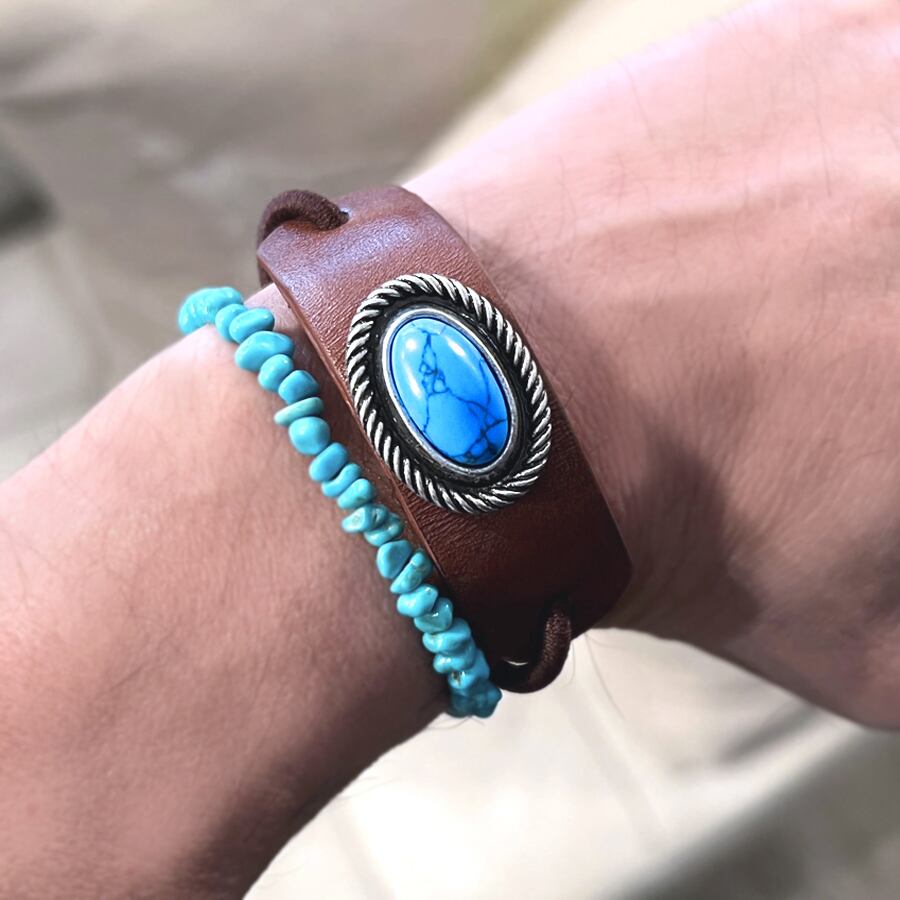 牛革+合金+コンチョ(調整ターコイズ)+ゴム材