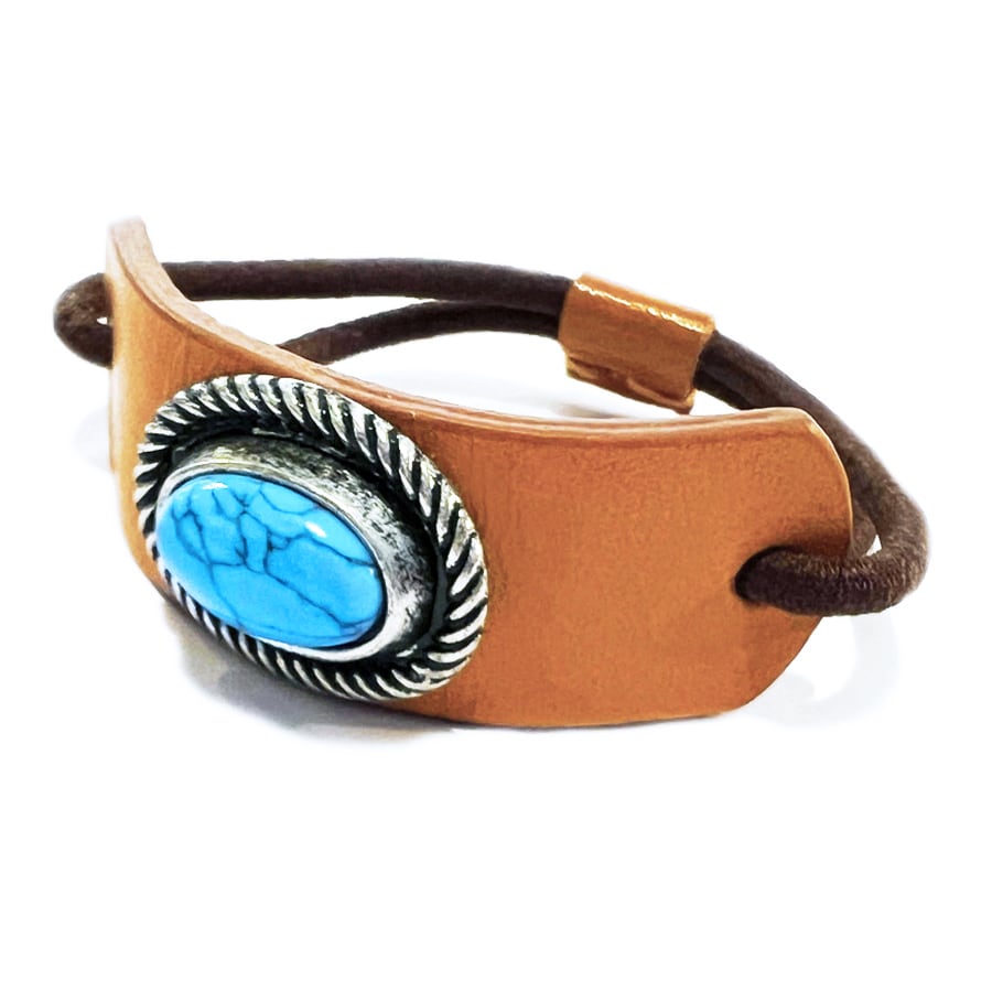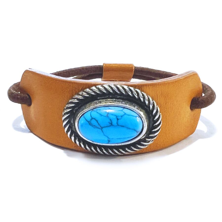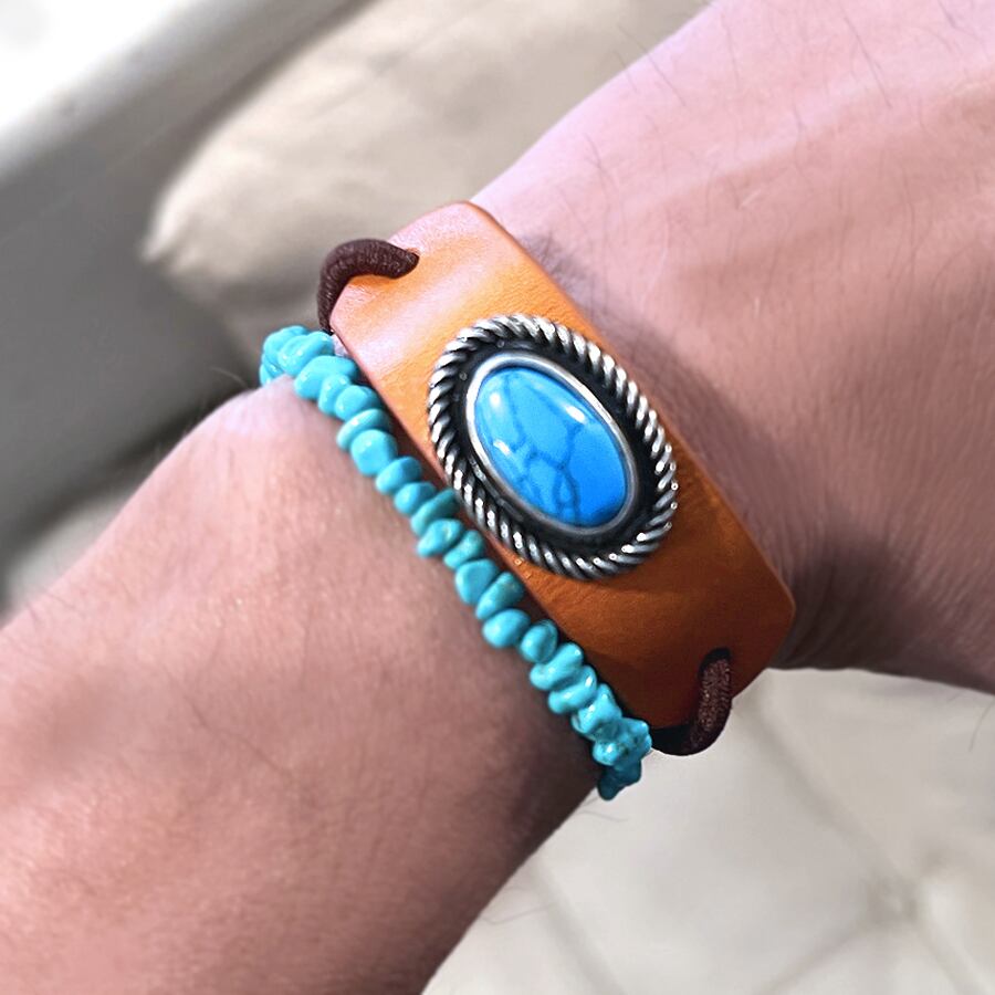 ターコイズコンチョのヘアーカフス+ブレス(タン)