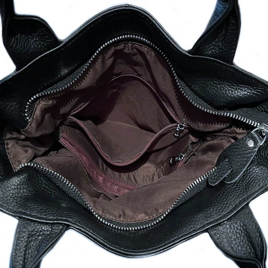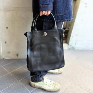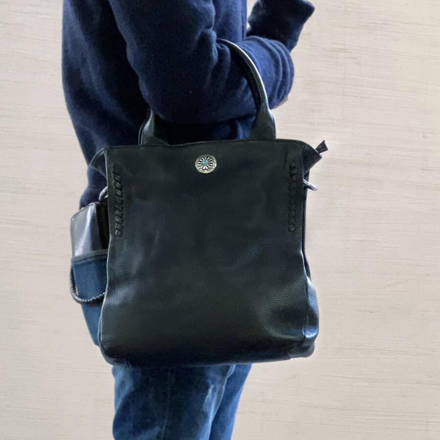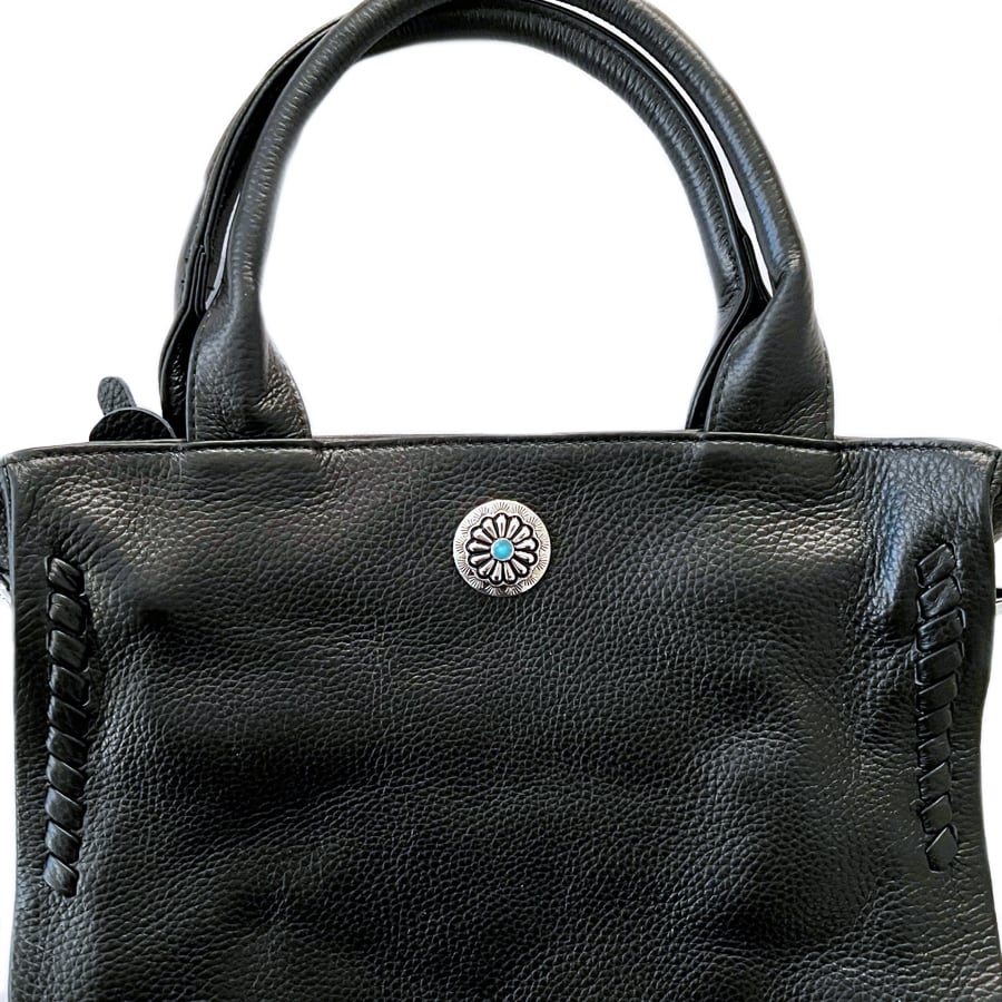 天然オイルレザーショルダートート(ブラック+ターコイズコンチョ)