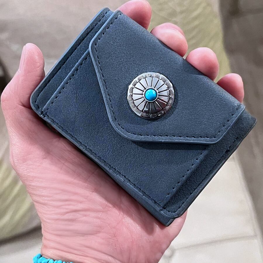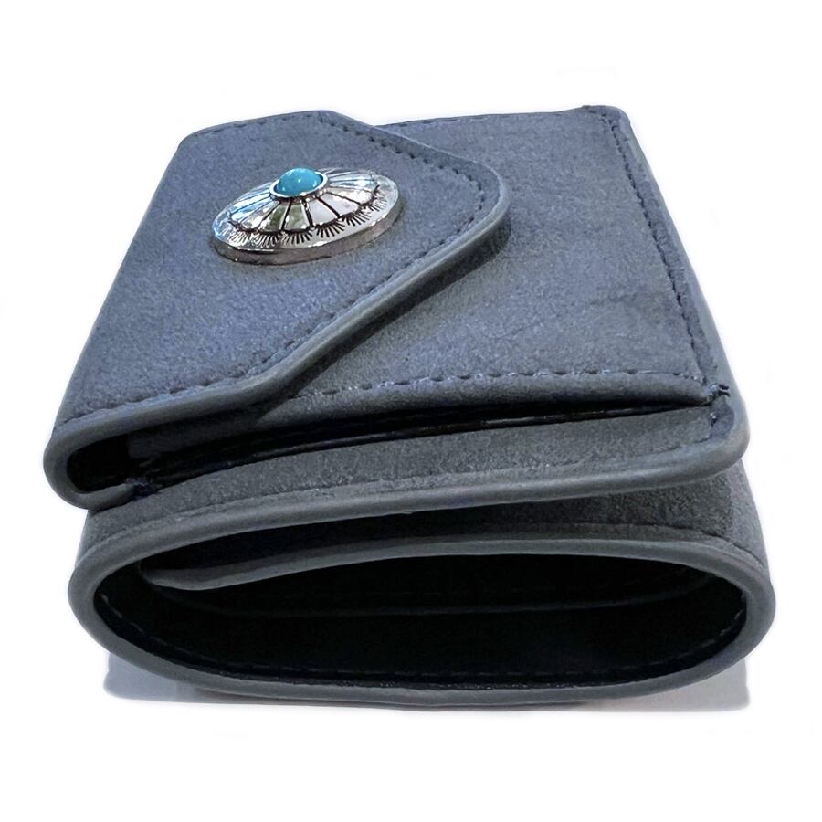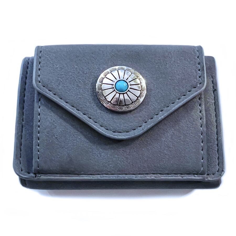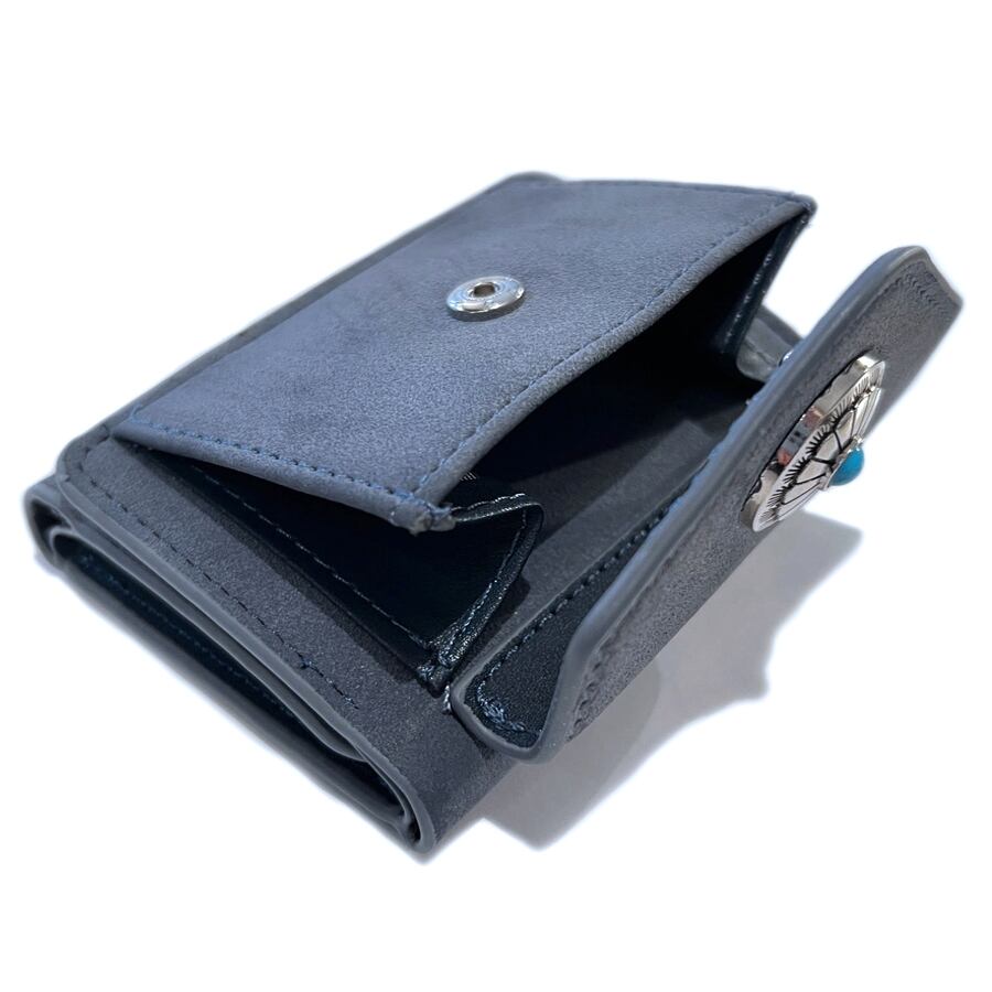合成バックスキン3つ折ウォレット(フラワーコンチョ/スモークネイビー)