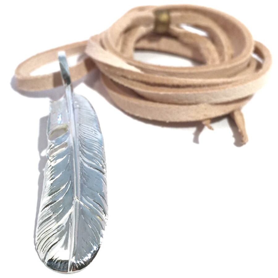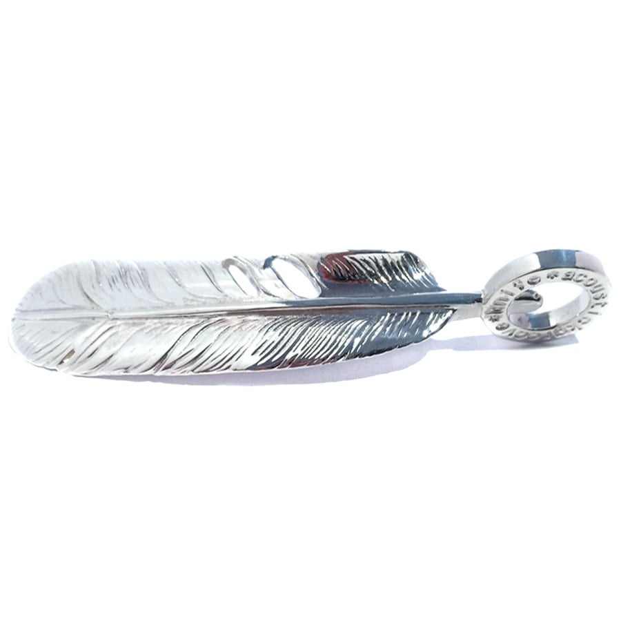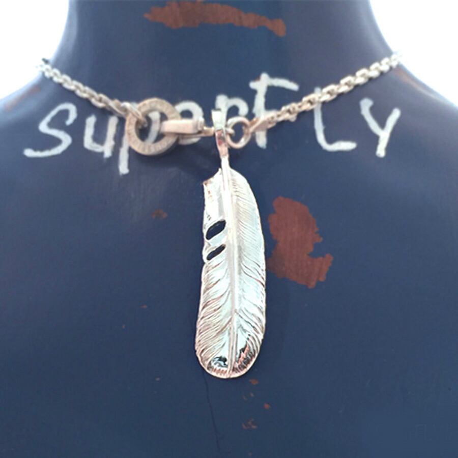 やや大振りの、羽根のペンダントです。とても躍動感ある SuperFLY の羽根の造作は、ネイティヴアメリカンと共にトレーラーハウスで生活を続けた熟練の彫金師が担当しています。全体に柔らかな丸みを帯び、どこか優しい風合いの羽根となりました。