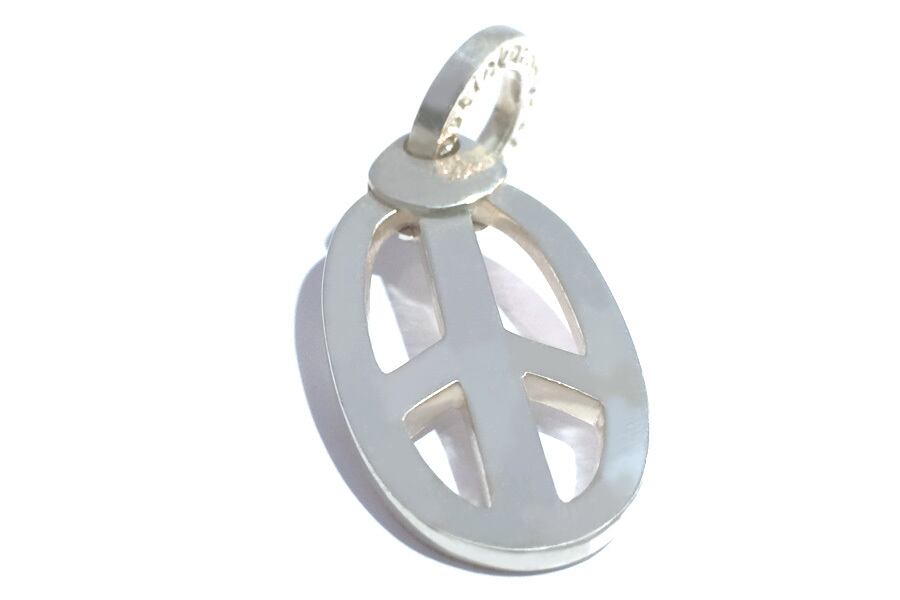 存在感のある、楕円形ピースマークのペンダントヘッドです。3つのパーツから組み立て、スケルトンの仕上りとしました。