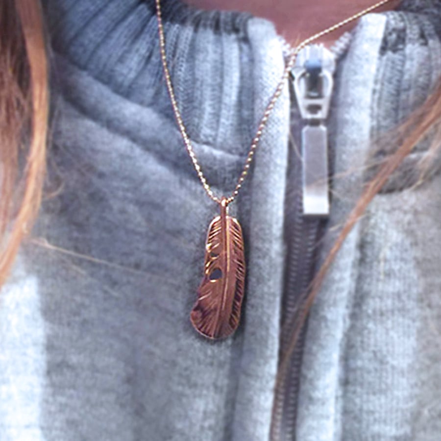 とても躍動感ある SuperFLY の羽根の造作は、ネイティヴアメリカンと共にトレーラーハウスで生活を続けた熟練の彫金師が担当しました。10金ピンクゴールド無垢で、丹念に繊細に製作しております。本物の羽根の風合いを再現しました。ネックレスチェーンには、キラキラカットを施したボールチェーンを使用。専用ケースに入れてのお届けとなります。