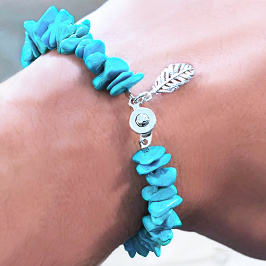 羽根のチャームを用いた、スリーピングビューティー鉱山限定、天然のアリゾナ産ターコイズのブレスレットです。宝飾クラスで世界最上級の天然ターコイズ、大地のパワーを感じる荒々しさ、その美しさは圧巻です。このスリーピングビューティー 鉱山Eは、鮮やかなターコイズブルーの発色が特徴。山のシルエットが横たわり眠る美しい女性の様である事から、スリーピングビューティー鉱山と名付けられました。このUSAアリゾナ州スリーピングビューティー鉱山は既に閉山となり、現在は採掘を行っていません。世界レベルで手に入りにくい、希少な天然ターコイズです。更に硬度にも優れ、汗にも強く色褪せしません。ターコイズは非常に明るいポジティブなエネルギーを放ち、ネガティブなエネルギーを払いのけ、困難を乗り越え願望を叶える為のサポートをしてくれます。シルクロードの時代から、旅のお守りともされます。金属部分は全て、上質のスターリングシルバーを使用。ワイヤーには、ナイロンコーティングを施したステンレス鋼の編み込みロープを用いております。