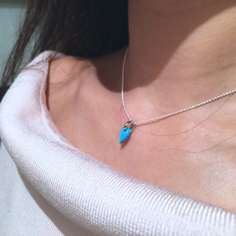 天然石から削り出した小さな10ミリ程のプチ羽根を、ネックレスにしました。繊細な細工で天然石から削り出し、小さいながらも大地の表情がとても豊かです。ネックレスチェーンには国産銀のカットボールチェーンを採用、長さをS~Lからお選び頂けます。留め具部分には、新型の羽根チャームを取り付けました。個性的でありながらとてもコーディネートしやすく、男女問わずプレゼントとしても最適です。ターコイズは非常に明るいポジティブなエネルギーを放ち、ネガティブなエネルギーを払いのけ、困難を乗り越え願望を叶える為のサポートをしてくれます。シルクロードの時代から、旅のお守りともされます。数量限定でのお届けとなります。