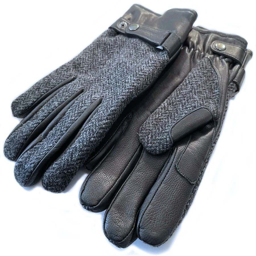 ハリスツイードx羊革グローブ(ダークグレイ/メンズM) ☆数量限定品