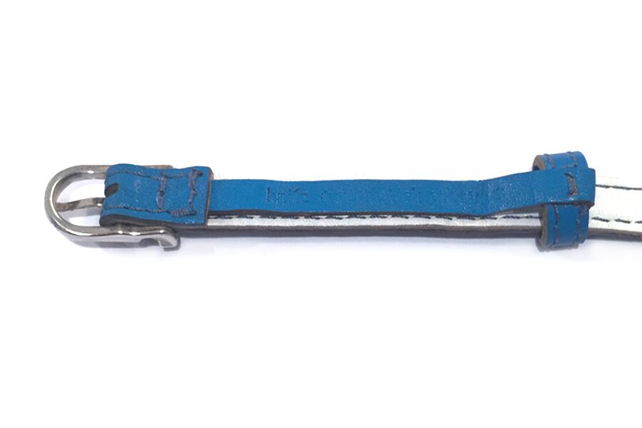耐久性のある発色のオイルレザーの本体に、銀のスタッズを組みました。このオイルレザーには染めに加え表面加工も施しているので、経年で色褪せにくくなっております。同様のホワイトレザーを背中合わせにし、上品なダブルフェイスにしました。スタッズには銀を厚くコーティングし、銀の美しさと耐久性を兼ね備えます。スタッズ6本は、本格的なネジ留め式にしています。とても作り込まれた、大人スタッズブレスレットです。サイズ調整穴も4段階に設け、ご自由にお使い頂けます。
